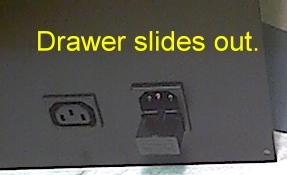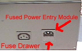 On the back of the control panel, along with the heater cord receptacle, is the Fused power Entry Module. The bottom half of the module is where the main power fuse is located.